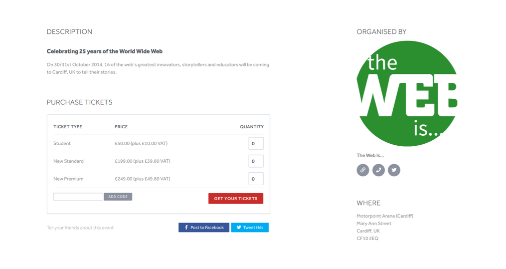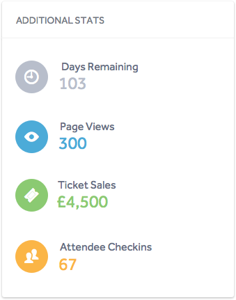 Track your events progress at any time – see how many tickets you’ve sold, who’s coming and how many times your event has been mentioned on Facebook and Twitter.