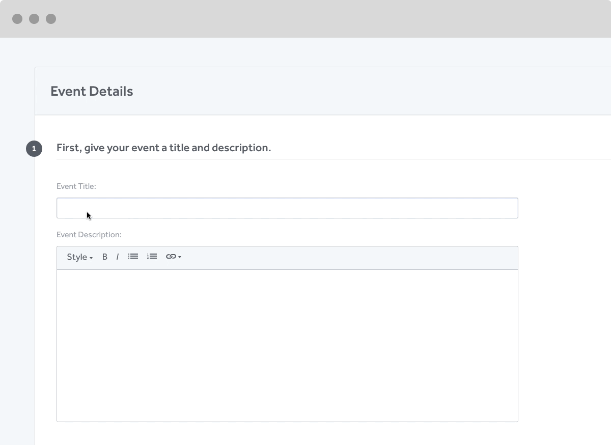 Setting up your event couldn't be easier. Just enter a few basic details and you'll get your own custom event webpage within minutes. No coding or design skills required.