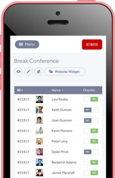 Manage your attendees from the palm of your hand with our simple check-in feature, which is fully optimised for use on your smartphone.